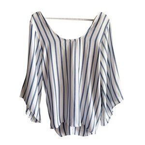 This striped top features a soft natural white base with vertical denim-blue stripes, giving it a timeless nautical feel. NWT