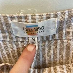 Cali 1850 Women Dress Large Beige White Stripe Overall Linen Blend Pockets Mini
