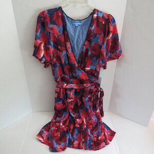 Draper James Midi Flutter Sleeve Lined Wrap Dress Blue Floral Size XL