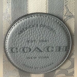 This Dempsey Corner Zip Wristlet is crafted in Coach’s signature jacquard canvas. The center Coach logo and wristlet strap is crafted in refined pebble grain leather. The interior features 2 cc slots and is lined in a light blue fabric. Carry it as a wristlet or toss it in your bag, the choice is yours! This light blue color is a beauty!
