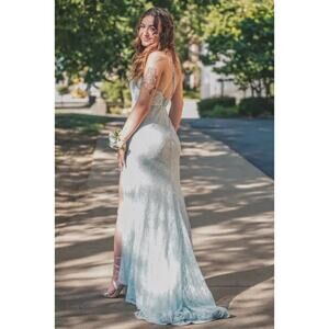 Lulus Dreaming of This Ice Blue Embroidered Lace Sleeveless Maxi Dress. Size small