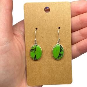 Genuine green matrix turquoise natural stone earrings. Solid sterling silver and stamped 925. They measure just over 1.25” long from the top of the hook to the bottom of the earring. New.