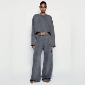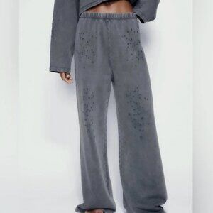 Zara Distressed Wide Leg Pull-On Gray Sweatpants Women Sz S