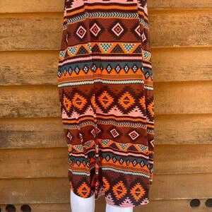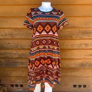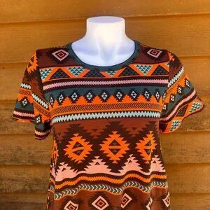 Lularoe Aztec Tribal Print Midi Dress Short Sleeve Made With Stretch Fabric Mult