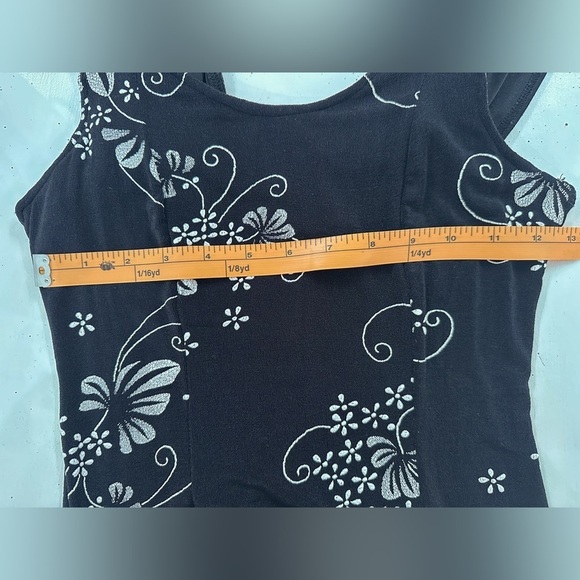 90’s Diamond Brand Dress - Black with white floral- Stretchy- Size Medium