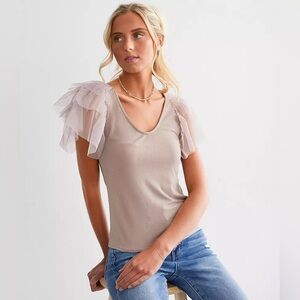 NWT Willow & Root Ribbed Knit Top With Tulle Sleeves 🤍
