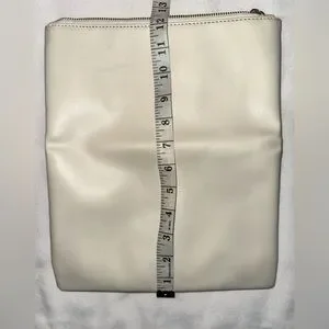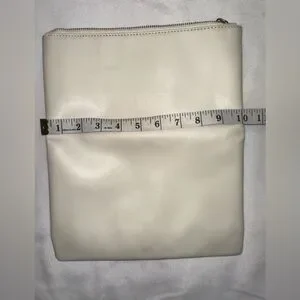 Elegant zipper pouch by Rachel Pally. Beige interior with red accents. Ideal for organizing small items.
