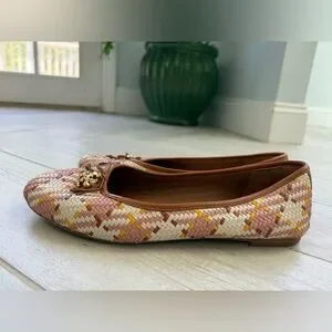 Tory Burch Woven Flats - Pink, Brown, and Cream