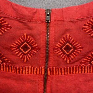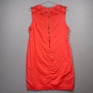 J Crew Dress Womens Small Orange Linen Blend Sleeveless Embroidered Casual