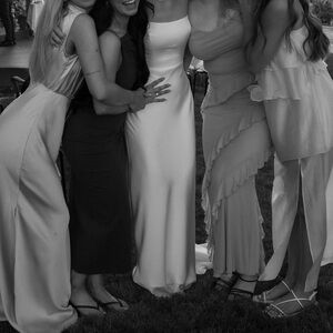 Wedding dress worn for a few hours during an intimate ceremony. Was not worn for extended period or a full length wedding. Like new condition. No stains or rips. Bought from Canadian brand park and fifth co. Wedding dress is Brodie bridal dress in the 2025 color and material. Size small. Altered to 5’6 height with heels and the train left on. The extra fabric is still available. Taken in at the waist. Boning in waist added for shape and support. Zipper and clasp back. Doesn’t seem to be available anymore online! Please note this is the bridal version not the shorten brides maid version.