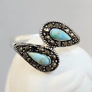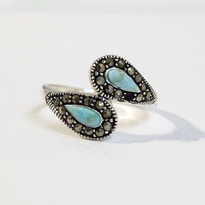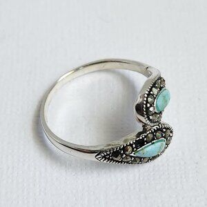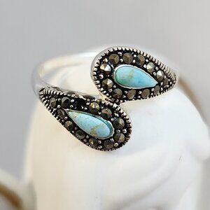 1990's Signed 925 Silver Classic Turquoise & Marcasite Ring Size 7