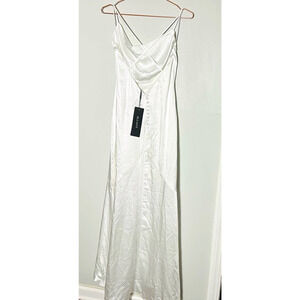 NWT Elliat Aisle Satin White Wedding Bride Slip Cowl Neck Maxi Dress Size Small