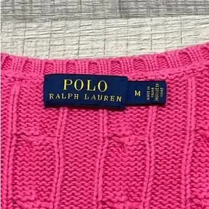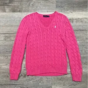 Polo Ralph Lauren Womens Size Medium Pink Cotton Cable Neck V Neck Sweater
