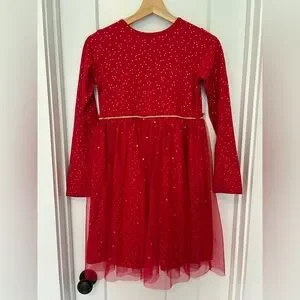 Hanna Andersson: Shimmer Star Dress in Soft Tulle Red with Gold Sparkle: Size 12