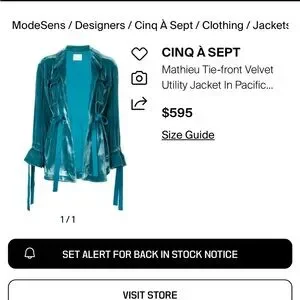 cinq a' sept Turquoise Silk and Rayon Velvet Blazer size small . Sold out immediately after releasing. Luxury brand Cing' a Sept plush silk and rayon velvet Mathieu Jacket! Super details like the grommet and ribbon drawstring waistline. Two functional breastline pleated flap pockets and two hip slash pockets that don't add bulk to the hips. The fabric texture is sensually soft.