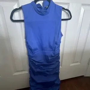 ZARA Mock neck fitted ruched stretch poplin mini dress