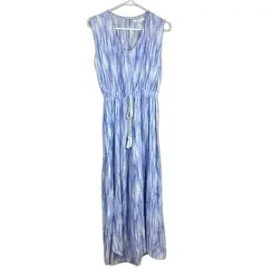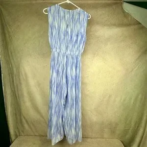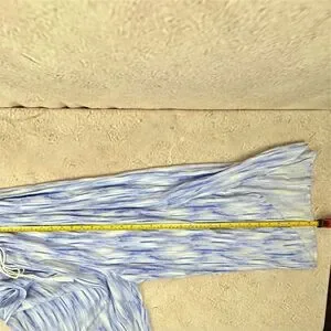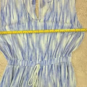 Stay stylish at the beach with this elegant blue and white swim coverup. Perfect for a day by the water.