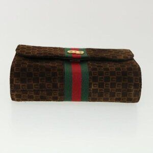 This vintage Gucci G Suede Clutch features a stylish brown color and is ideal for adding a touch of luxury to any outfit, perfect for evening outings or special occasions.