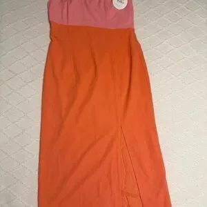 NEW Petal & Pup Xiomar One Shoulder Midi Dress Orange Pink Size US 8 Cocktail