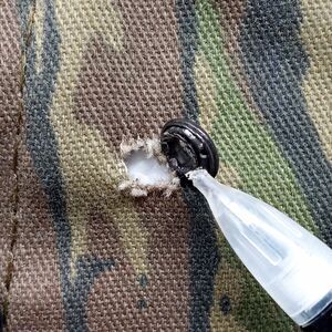 The hat is pre-owned and one of the eyelets is loose (photo 6), but it' still in good, wearable condition.
