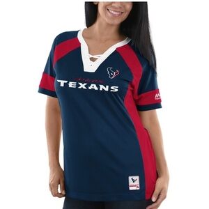 Women's Majestic Navy/Red Houston Texans Draft Me V-Neck T-Shirt Size Small