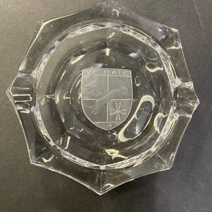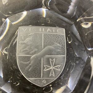 Vintage Crystal Faceted Ashtray VIGILATE Heraldic Emblem (Knights Of Malta)