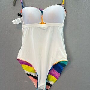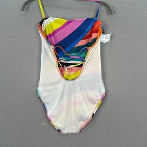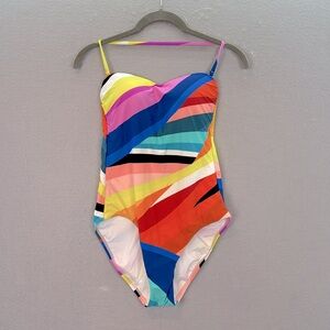 La Blanca Women's Sunscape Bandeau one piece swimsuit rainbow tummy control SZ 4