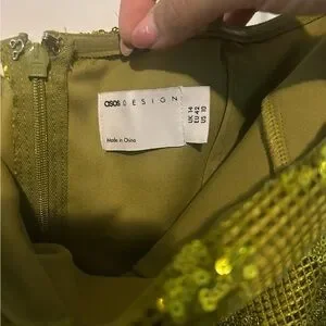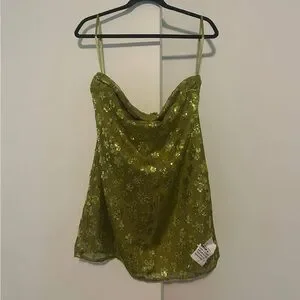 Shimmering green sequin strapless dress with floral design. Perfect for a night out!