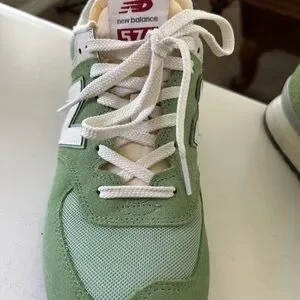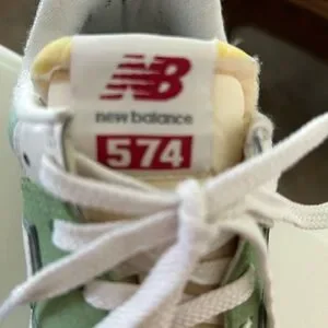 Step into comfort and style with the New Balance 574 athletic shoes, worn about two times and mostly in the house.