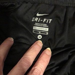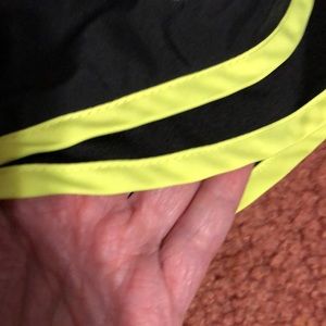 Nike Dri-Fit Shorts, Size medium, by Nike, Black & yellow colors, With a built in Panty, Please see pictures, The Nike logo in the lower left-hand corner of the Shorts, There’s a drawstring on the inside as shown in the picture, so you can make them bigger or smaller as desired, Bright yellow lining with double edging at the bottom, Mesh on either side of the shorts.