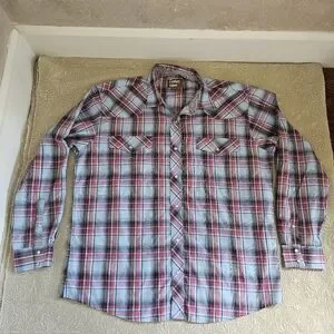 Cowboy Legend 3x mens western pearl snap, blue and pink plaid, long sleeve