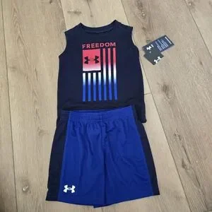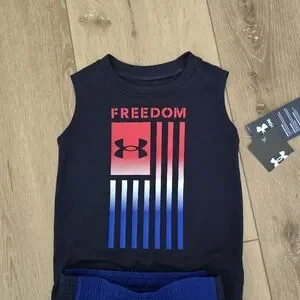 Under Armour Toddler Boys Freedom Flag Tank Top and Shorts Set Midnight…