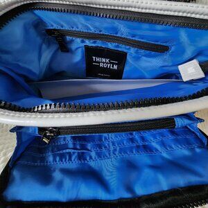Stylish crossbody bag by THINK ROYLN. Features a sleek white design with black accents. Perfect for everyday use.
