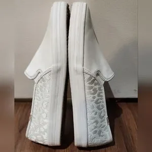 Women's Kate Spade Silver Cheetah Print Leather Keds, Size 11. Gently used; slight wear in stitching, some marks on them posted in pics. Overall still in great condition.