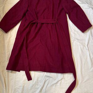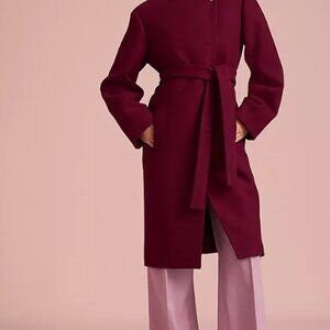 STILL HAS THE TAGS ON IT! Ann Taylor Tie Waist Balloon Sleeve Coat. Shell: 51% Polyester, 49% Wool; Lining: 100% Polyester. Tends to fit a little large. Crew neck. Single collar button. VERY put together in the color Rich Mulberry.