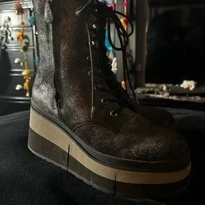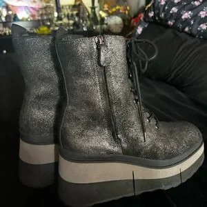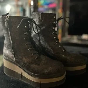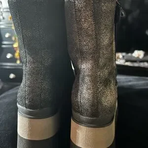 Real leather this is the gray pair which is still black, but they have a black pair which makes these look gray ,only worn these boots one time to the store and they are absolutely comfortable. Just trying to downsize my collection size 7 1/2 but I feel they could fit a size 8 also because they fit me and I am size 7 1/2 or 8 or 38 Eur. The actual zipper is on the outside of the boot, which is cute and different and they’re flexible souls there’s like slits on the side of the souls naked feet is actually known for their comfort. Boots did retail at $258 and they are real genuine leather.