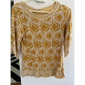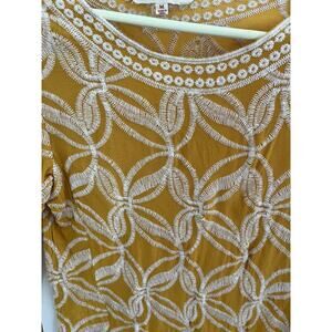 Solitaire Women M Yellow Embroidered Blouse Top Boho Hippie Vtg