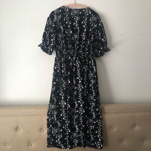 Dazy Elegant Black Floral Midi Dress With Ruffled Sleeves/Thick Lining Size-M