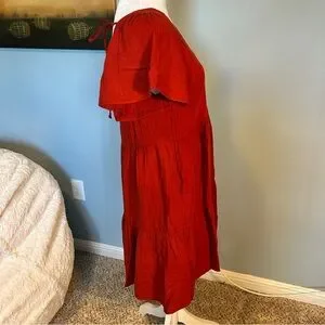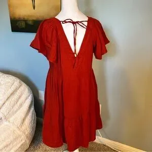 NWT, 100% cotton, short sleeved, scarlet dress with a V-neck and tie in back, from Old Navy. Flutter sleeves and tiered skirt. Light and airy fit, slightly oversized. Size M.