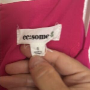 This elegant pink gown by Eesome is perfect for wedding guests and cocktail events. Featuring a flattering V-neckline and flutter sleeves, the dress flows gracefully to a maxi length, creating a sophisticated silhouette. The solid pink color and luxurious fabric make it a standout choice for any special occasion.