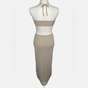 Elegant Tan Halter Cutout Dress- NWOT