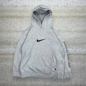 Vintage Nike Hoodie Light Grey Cotton Black Center Swoosh Spellout Logo Y2K