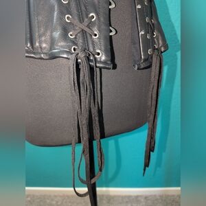 Sleek and stylish black corset jacket perfect for adding an edgy touch to any outfit. Features intricate lace-up detailing for a customizable fit.