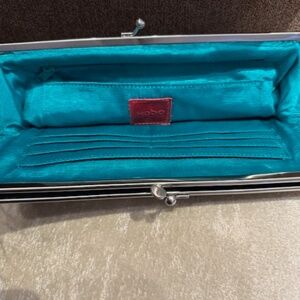 Like New Lauren clutch with zipper on bottom and beautiful teal lining - Nickel hardware