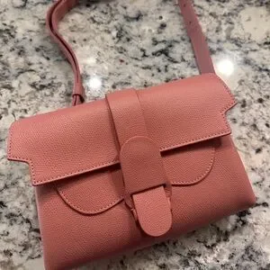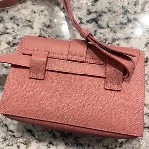 From Senreve- “The Aria Belt Bag features a front slip pocket, an interior zip pocket, cardholders, and a main compartment that can fit an iPhone 14 Pro Max and other essentials. With two exterior loops, two interior loops, and an adjustable and removable leather strap, The Aria can be worn as a belt bag, a sling bag, a crossbody, or a clutch. The leather strap can even be worn as a belt on its own. Patented for design and utility.”