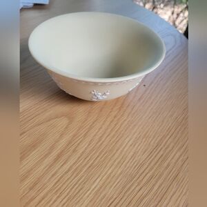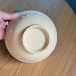 This vintage Wedgwood Jasperware bowl is a beautiful addition to any collection. With a stunning yellow primrose design and white prunus footed base, it's sure to catch the eye of any admirer. The bowl measures 5 3/4 inches in diameter and 3” tall it is made of unglazed stoneware material. Perfect for collectors of decorative items or those who appreciate Wedgwood brand pieces.