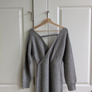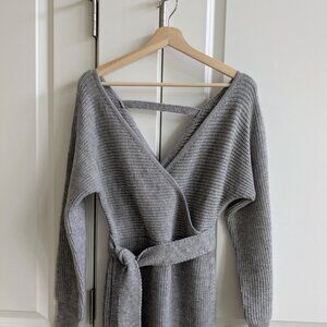 NWT Shein Frenchy Sweater Dress L Gray Chunky Knit Deep V Neck Side Slits Comfy