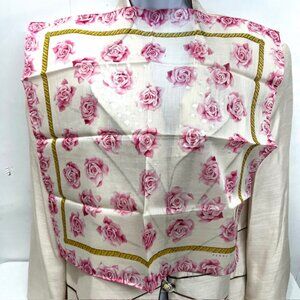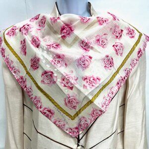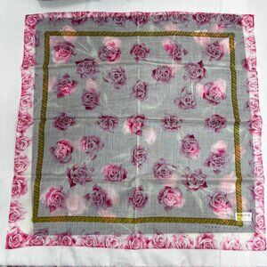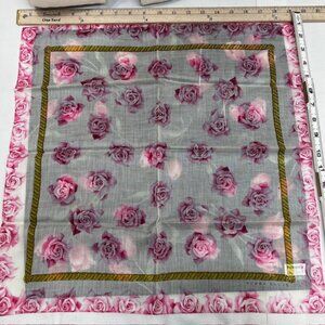#11 Unused Women Mini Scarf/handkerchiefs: 1)Perry Ellis prink flroal gold rob trim, and 1) Renoma navy blure floal printed with green stem, cotton made, 18"-19"