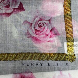 (2) Unused Perry Ellis & Renoma Mini Scarf/handker cottonPink Blue Floral-18"(11
