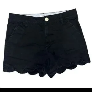 Crown & Ivy Girls Navy Blue Flat Front Slash Pocket Chino Scalloped Shorts